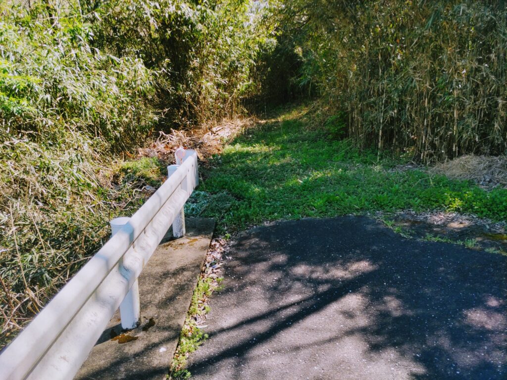 実は進行方向右手の人家背後にある雑木とスズタケの山林こそ、小川炭鉱の跡であり、飯田太陽光発電所の計画地である。